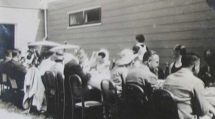 Precies een week voor de officiële opening van het nieuwe Vliegveld was er een feestelijke lunch thuis georganiseerd bij een van de initiatiefnemers van het Vliegveld, dhr M.A.G. van der leeuw te Rockanje.